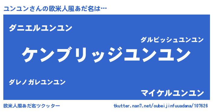 | 男性向けラノベタイトル風あだ名 | 『Re:ユンユンから始める異世界生活』 |