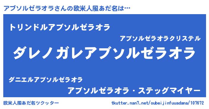 | 男性向けラノベタイトル風あだ名 | 『この素晴らしい世界にアブソルゼラオラを!』 |