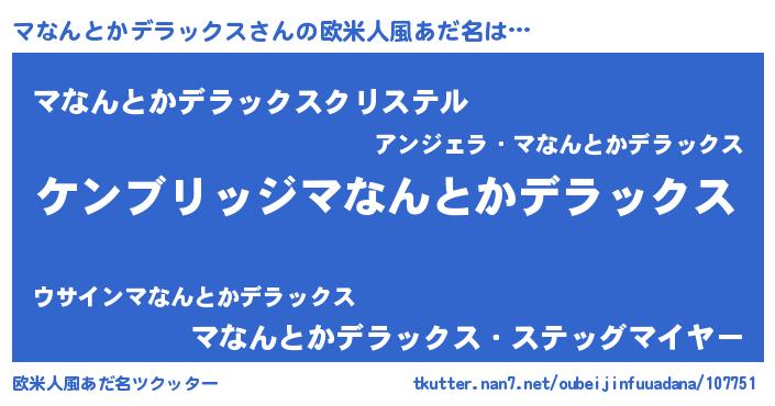 | 男性向けラノベタイトル風あだ名 | 『Re:マなんとかデラックスから始める異世界生活』 |