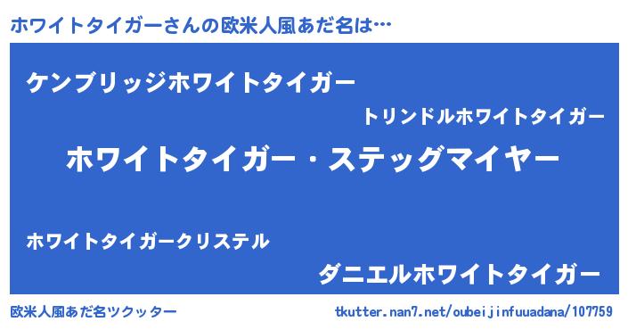 | 男性向けラノベタイトル風あだ名 | 『冴えないホワイトタイガーの育てかた』 |