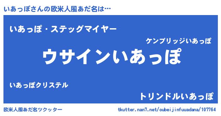 | 男性向けラノベタイトル風あだ名 | 『いあっぽの嫁は女の子じゃないと思った?』 |