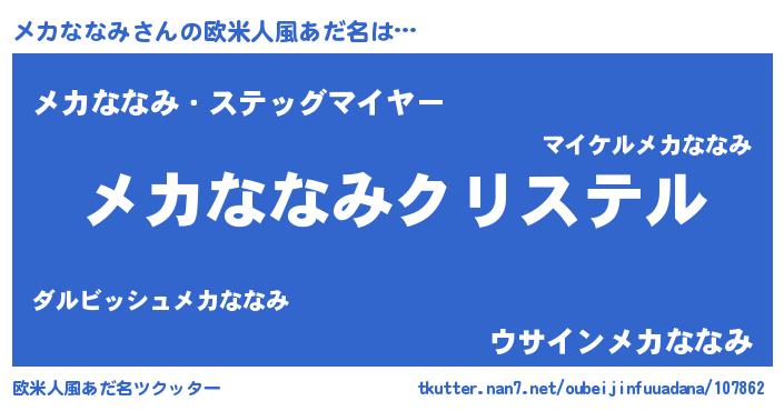 | ファンタジー風あだ名 | 『エターナルメカナナミー』『メカフェル』 |