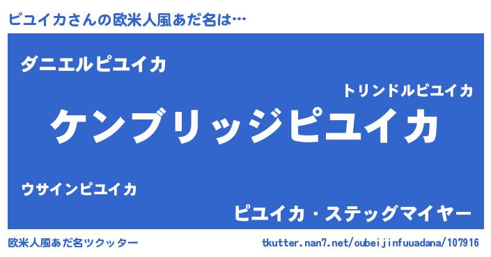 | 男性向けラノベタイトル風あだ名 | 『Re:ピユイカから始める異世界生活』 |