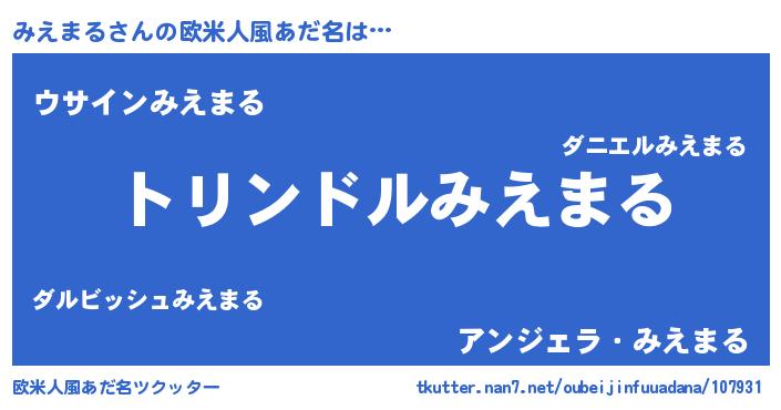 | 男性向けラノベタイトル風あだ名 | 『みえまる~年齢イコール彼女いない歴の魔法使い~』 |