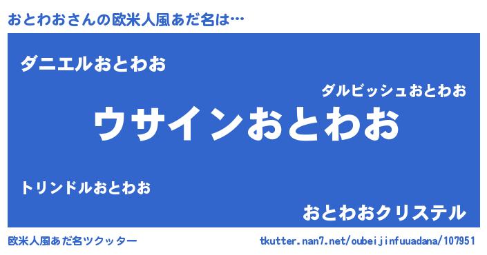 | 男性向けラノベタイトル風あだ名 | 『おとわおの嫁は女の子じゃないと思った?』 |