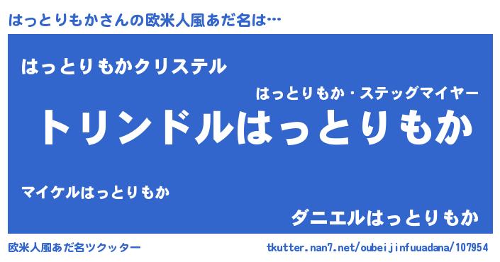| 男性向けラノベタイトル風あだ名 | 『転生したらはっとりもかだった件』 |