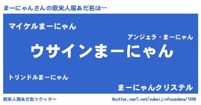 | 女子向けラノベタイトル風あだ名 | 『まーにゃんは平凡を望む』 |
