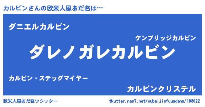 | 男性向けラノベタイトル風あだ名 | 『この素晴らしい世界にカルビンを!』 |
