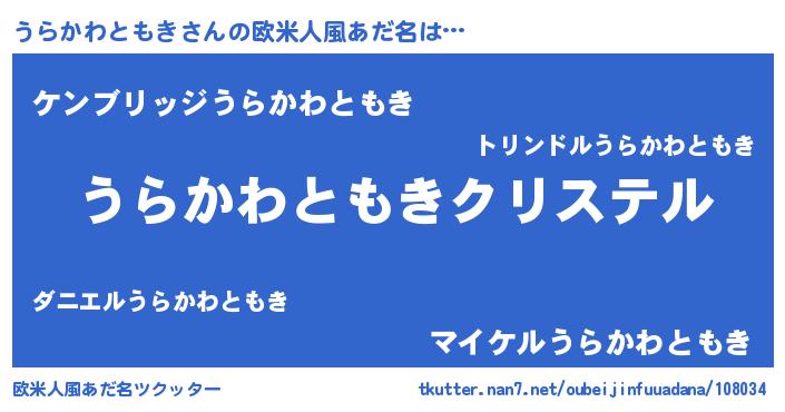 | 女子向けラノベタイトル風あだ名 | 『うらかわともきの雑貨屋さん』 |