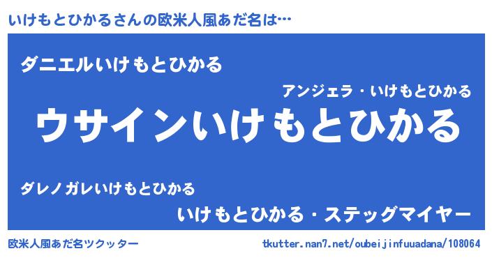 | 男性向けラノベタイトル風あだ名 | 『いけもとひかるの嫁は女の子じゃないと思った?』 |