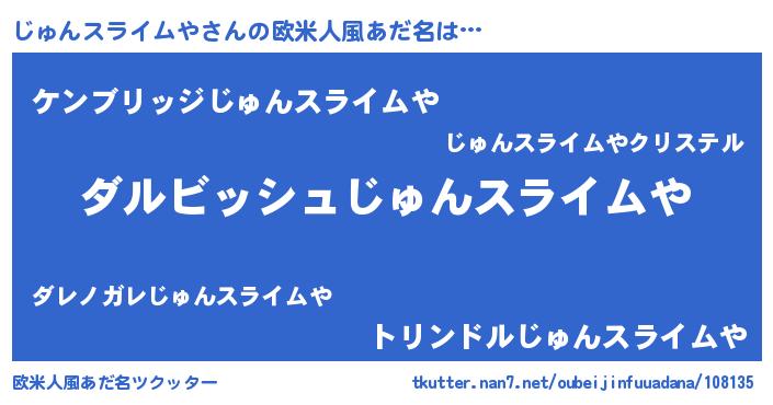 | 胡散臭い通販商品みたいなあだ名 | 『来世でも幸せになれる健康食品…その名も「じゅんスライムや」』 |
