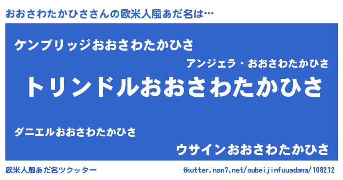 | ヘコむあだ名 | 『おおっちょ』『おおさわたかひさ(笑)』 |