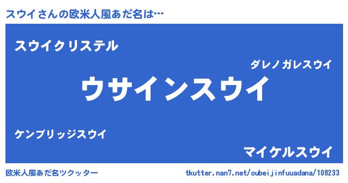 | 女子向けラノベタイトル風あだ名 | 『スウイ様がみてる』『スウイの婚約者』 |