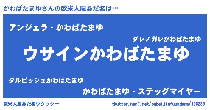 | ポケモン風あだ名 | 『ヒカワバタマユ』『カワゴンZ』 |