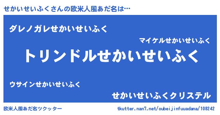 | 胡散臭い通販商品みたいなあだ名 | 『あなたにだけ特別に提供する100年もののヴィンテージワイン…その名も「せかいせいふく」』 |