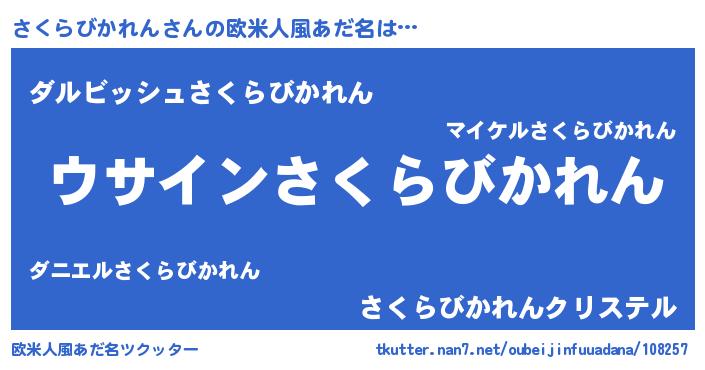| 男性向けラノベタイトル風あだ名 | 『さくらびかれんの嫁は女の子じゃないと思った?』 |