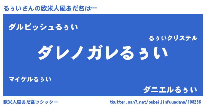 | 男性向けラノベタイトル風あだ名 | 『この素晴らしい世界にるぅいを!』 |