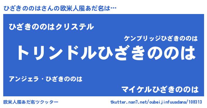 | 男性向けラノベタイトル風あだ名 | 『転生したらひざきののはだった件』 |