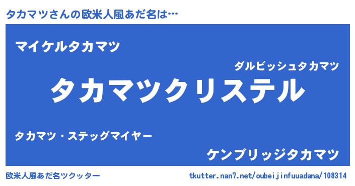 | 女子向けラノベタイトル風あだ名 | 『タカマツの雑貨屋さん』『闇のタカマツ』 |