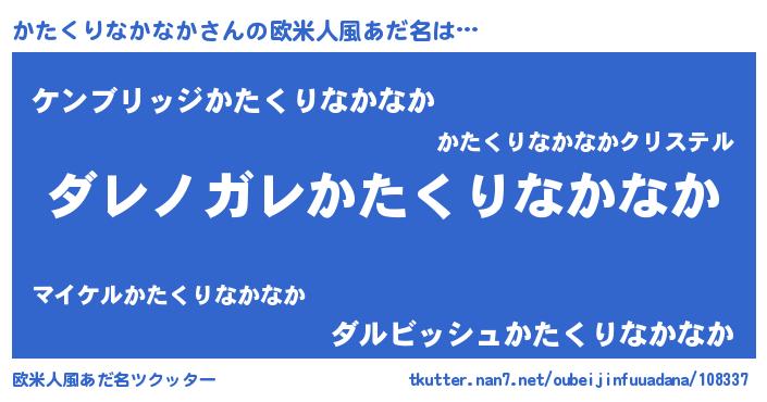 | 意味不明あだ名 | 『住所不定無職かたくりなかなか(86歳)』 |