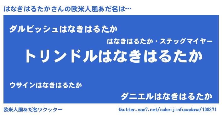 | 男性向けラノベタイトル風あだ名 | 『転生したらはなきはるたかだった件』 |