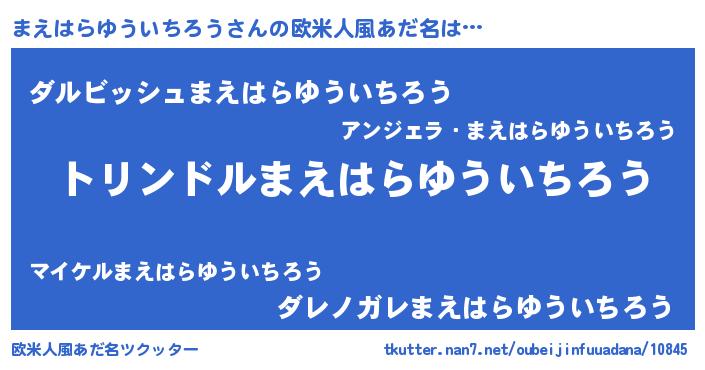 | 男性向けラノベタイトル風あだ名 | 『転生したらまえはらゆういちろうだった件』 |