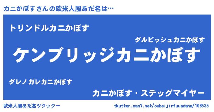 | 男性向けラノベタイトル風あだ名 | 『Re:カニかぼすから始める異世界生活』 |