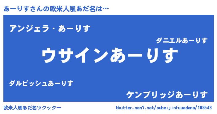 | 意味不明あだ名 | 『とにかく怪しいあーりす』 |