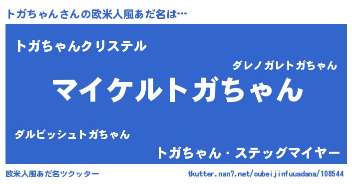 | 胡散臭い通販商品みたいなあだ名 | 『モテモテ間違いなし霊験あらたかなお札…その名も「トガちゃん」』 |