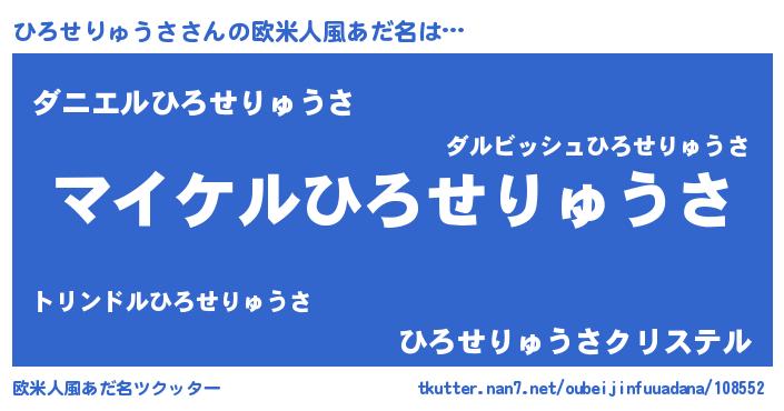 | 男性向けラノベタイトル風あだ名 | 『ひろせりゅうさの憂鬱』 |
