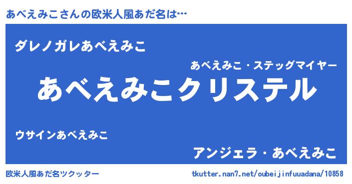 | 男性向けラノベタイトル風あだ名 | 『やはりあべえみこの青春ラブコメはまちがっている 』 |