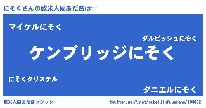 | ヘコむあだ名 | 『にそにー』『にそく(遠い目)』 |