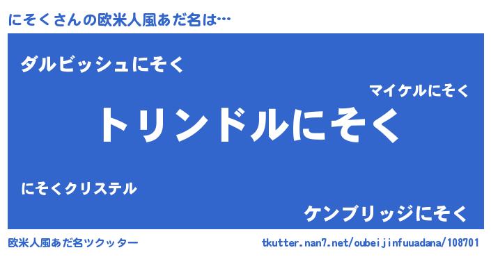 | ヘコむあだ名 | 『にそく(笑)』『にそっふぃ~』 |