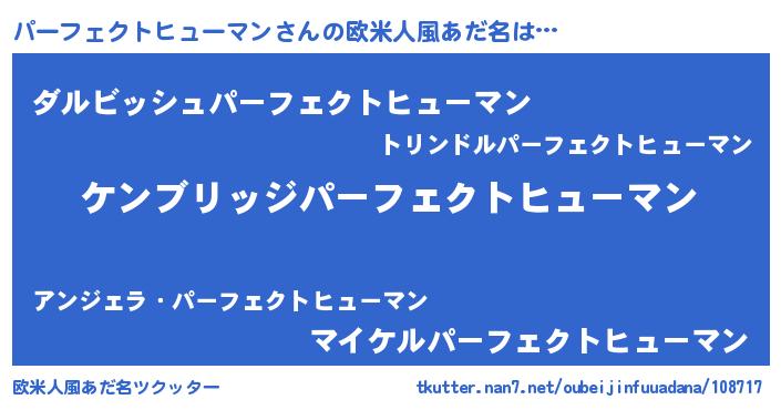 | 男性向けラノベタイトル風あだ名 | 『Re:パーフェクトヒューマンから始める異世界生活』 |