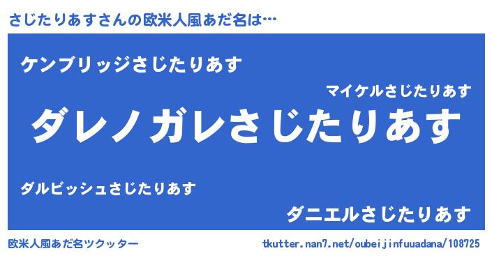 | 意味不明あだ名 | 『住所不定無職さじたりあす(65歳)』 |