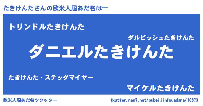 | 男性向けラノベタイトル風あだ名 | 『おまえをオタクにしてやるから、俺をたきけんたにしてくれ! 』 |
