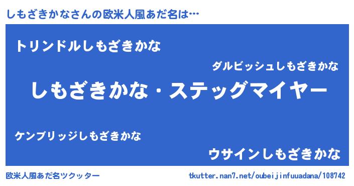 | 女子向けラノベタイトル風あだ名 | 『シンデレラしもざきかな家の靴箱館』 |