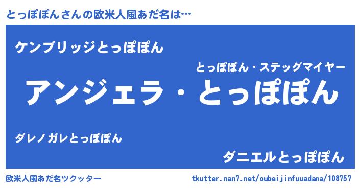 | 意味不明あだ名 | 『自称とっぽぽん』『ペロリンとっぽぽん』 |