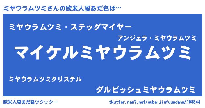 | 男性向けラノベタイトル風あだ名 | 『ミヤウラムツミの憂鬱』 |