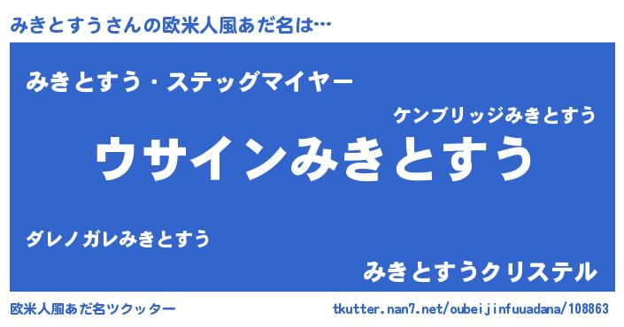 | 男性向けラノベタイトル風あだ名 | 『みきとすうの嫁は女の子じゃないと思った?』 |