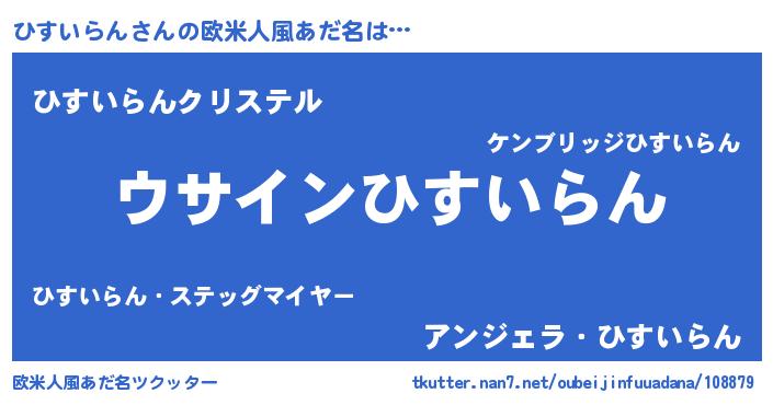 | 女子向けラノベタイトル風あだ名 | 『ひすいらんの卵を拾いまして』 |