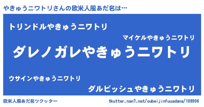 | 意味不明あだ名 | 『住所不定無職やきゅうニワトリ(91歳)』 |