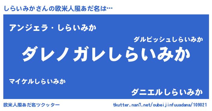 | 男性向けラノベタイトル風あだ名 | 『この素晴らしい世界にしらいみかを!』 |