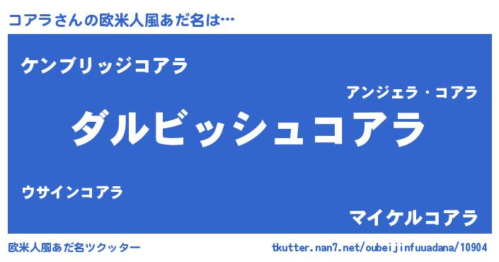 | 女子向けラノベタイトル風あだ名 | 『異世界で失敗しない100のコアラ』 |
