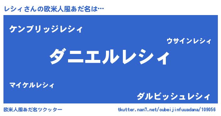 | 女子向けラノベタイトル風あだ名 | 『レシィ恋絵巻』『レシィアンティーク』 |