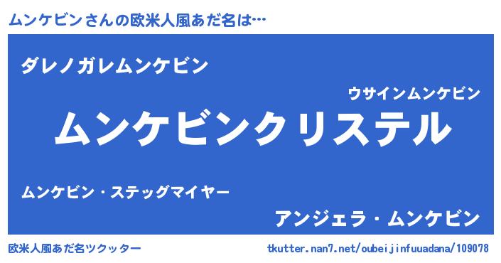 | 女子向けラノベタイトル風あだ名 | 『ムンケビンの雑貨屋さん』 |