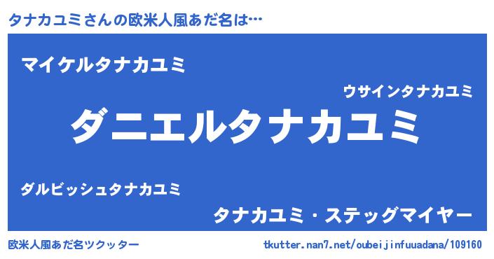| 男性向けラノベタイトル風あだ名 | 『おまえをオタクにしてやるから、俺をタナカユミにしてくれ! 』 |
