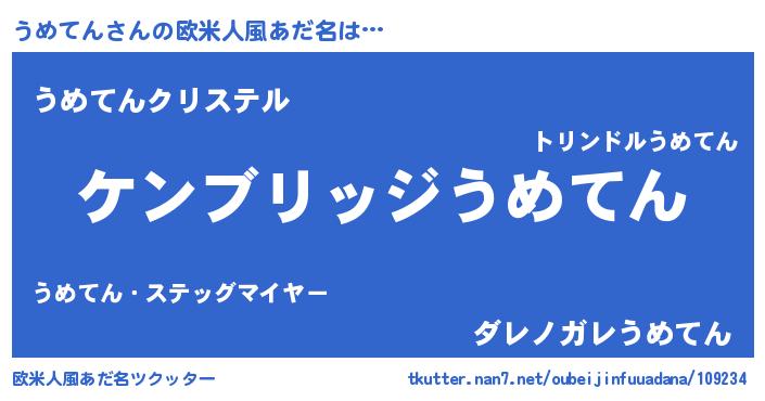 | 男性向けラノベタイトル風あだ名 | 『Re:うめてんから始める異世界生活』 |