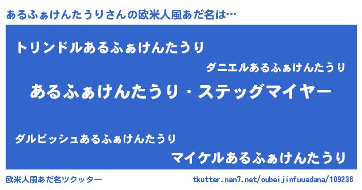 | 胡散臭い通販商品みたいなあだ名 | 『億万長者になれる霊験あらたかなお札…その名も「あるふぁけんたうり」』 |