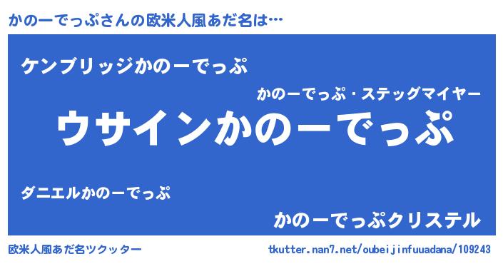 | 意味不明あだ名 | 『とにかく怪しいかのーでっぷ』 |
